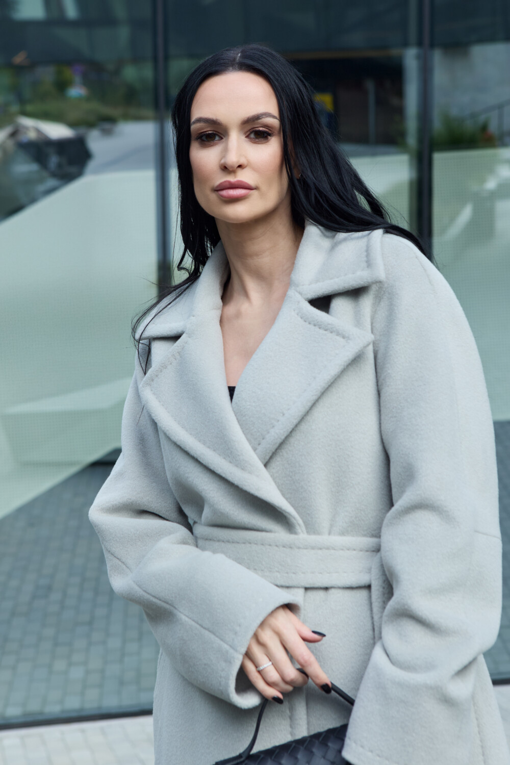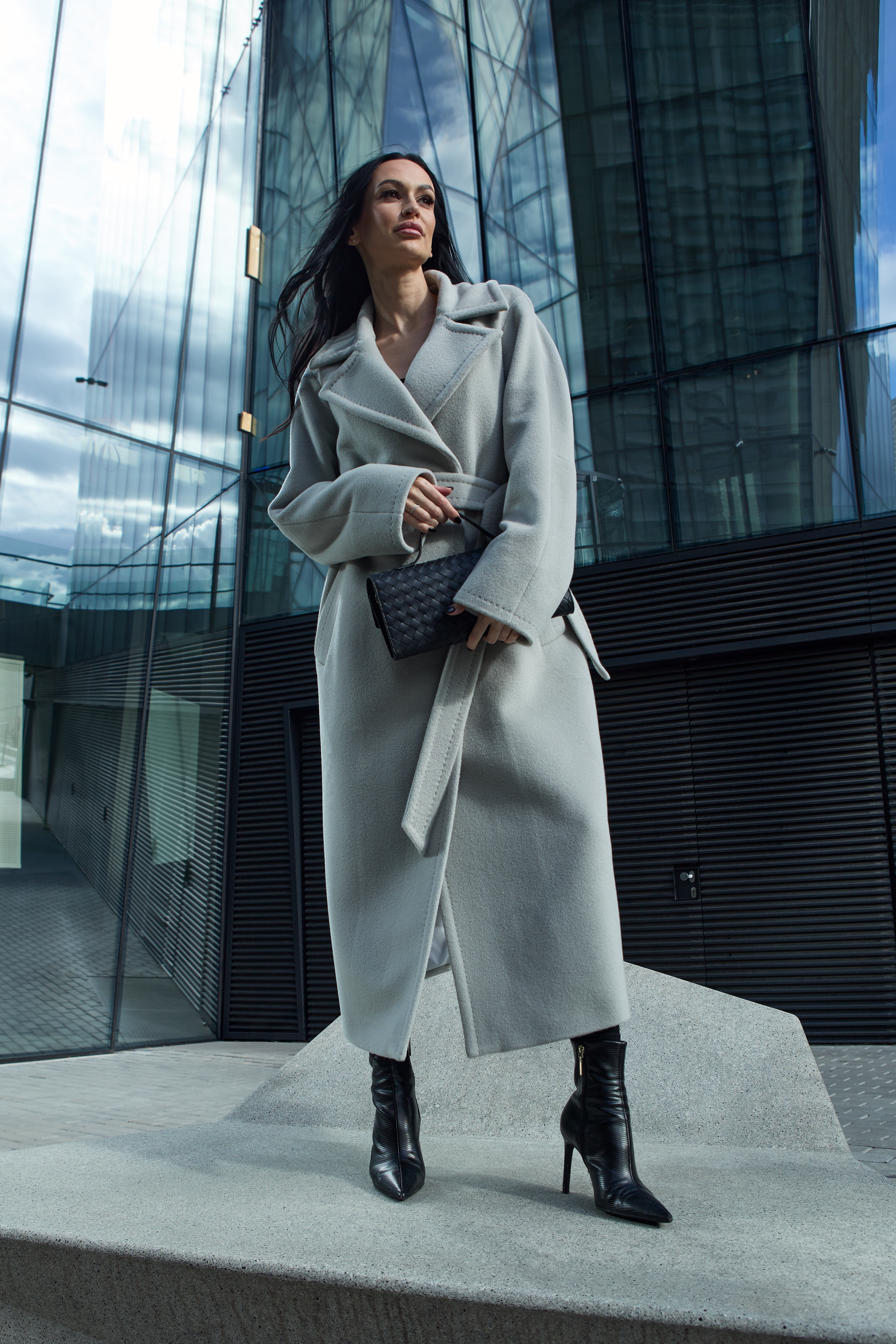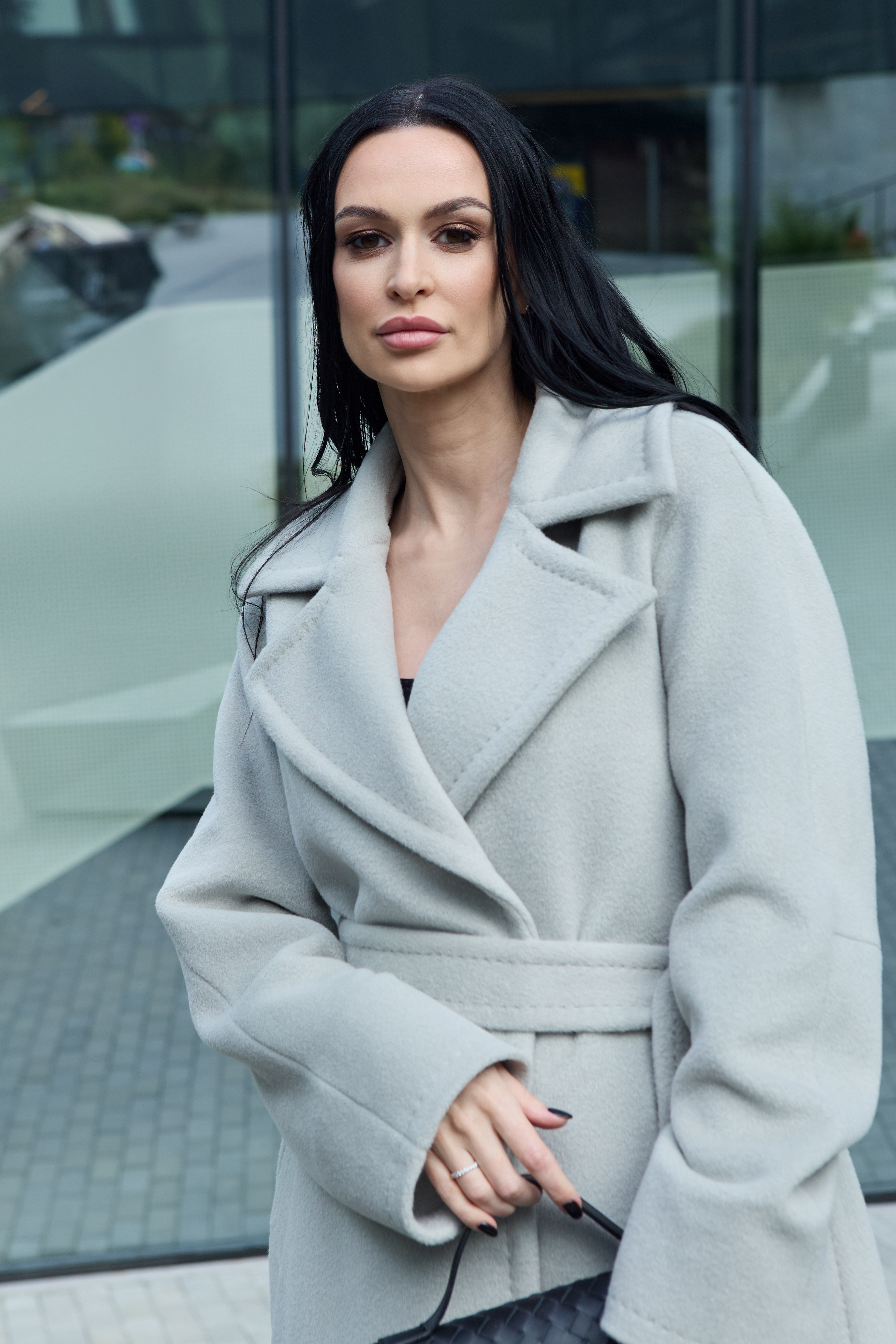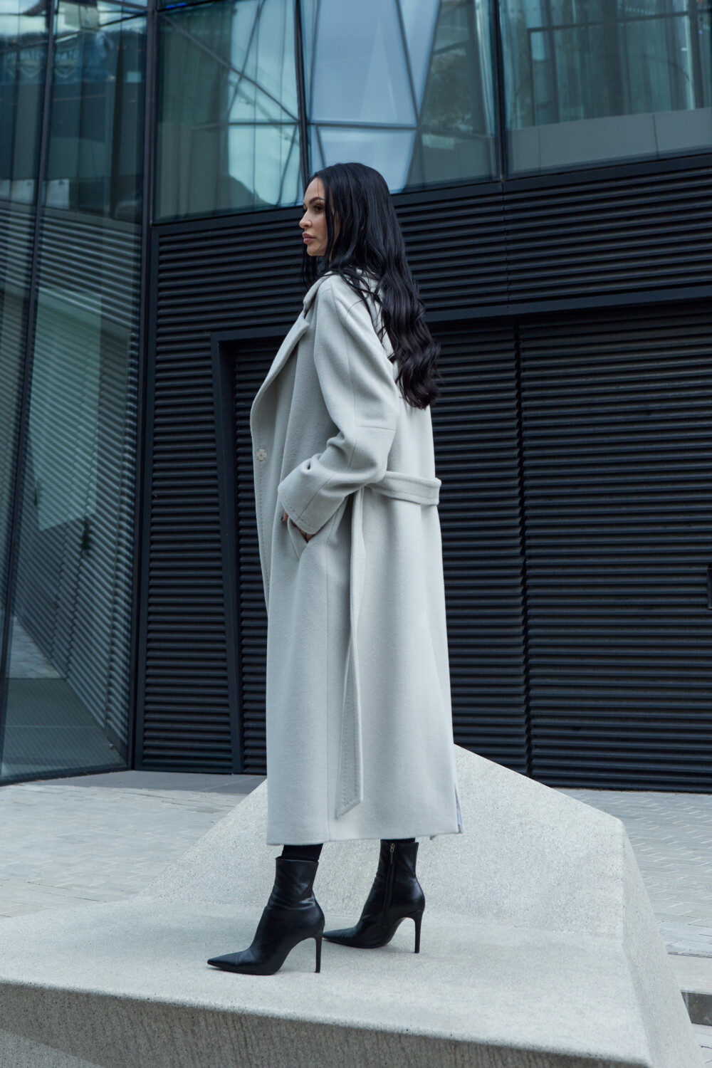 The coat includes semi-wool insulation — lightweight and thin, maintaining its structure while offering excellent thermal insulation and wind resistance, yet allowing the fabric to breathe. Semi-wool padding is used only in premium garments, as it is several times more expensive than other types of insulation. With its thermal insert, this coat is perfectly suited for the cold Lithuanian winter. When you press the alpaca wool fabric against your body in the cold, you will immediately feel its warmth.