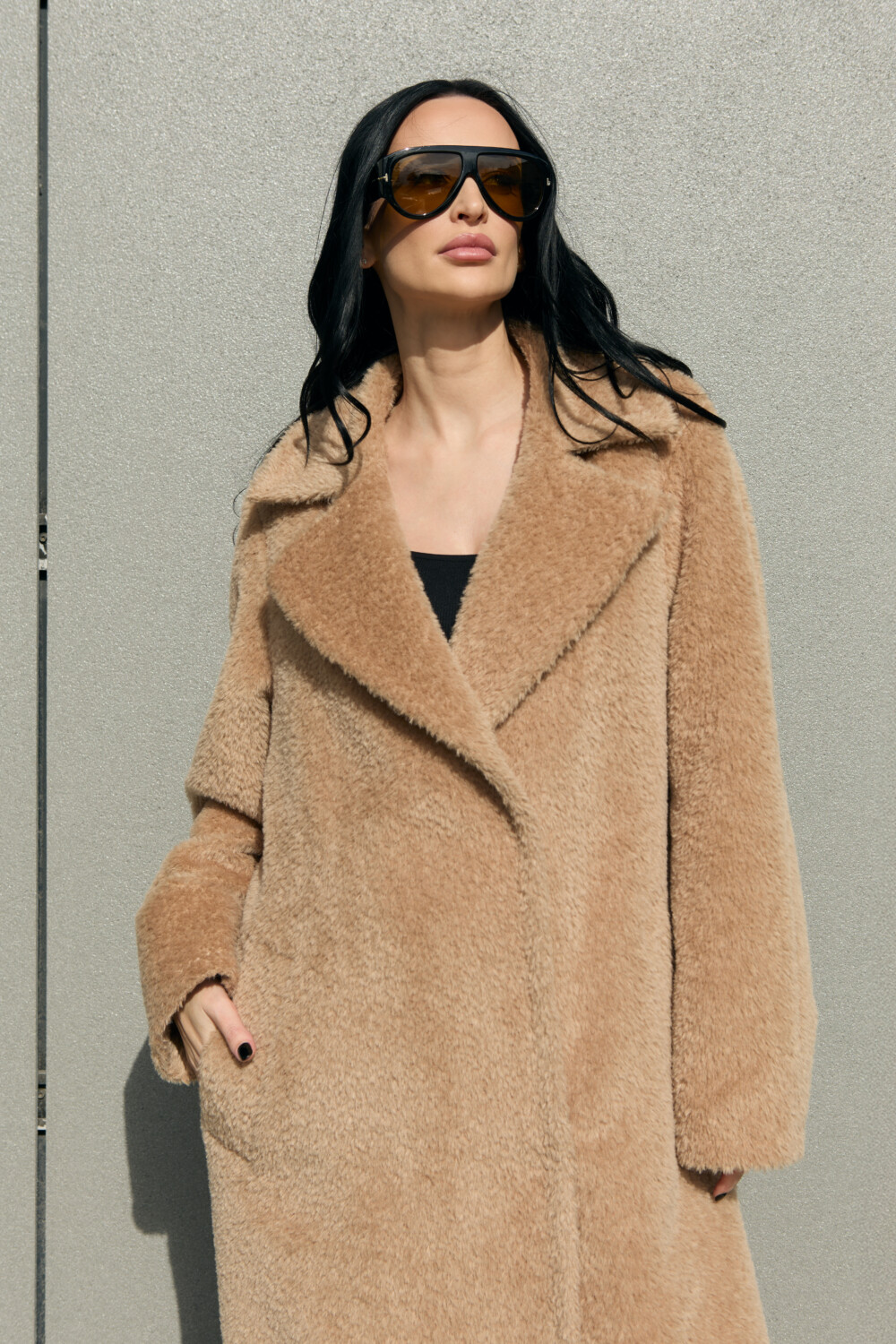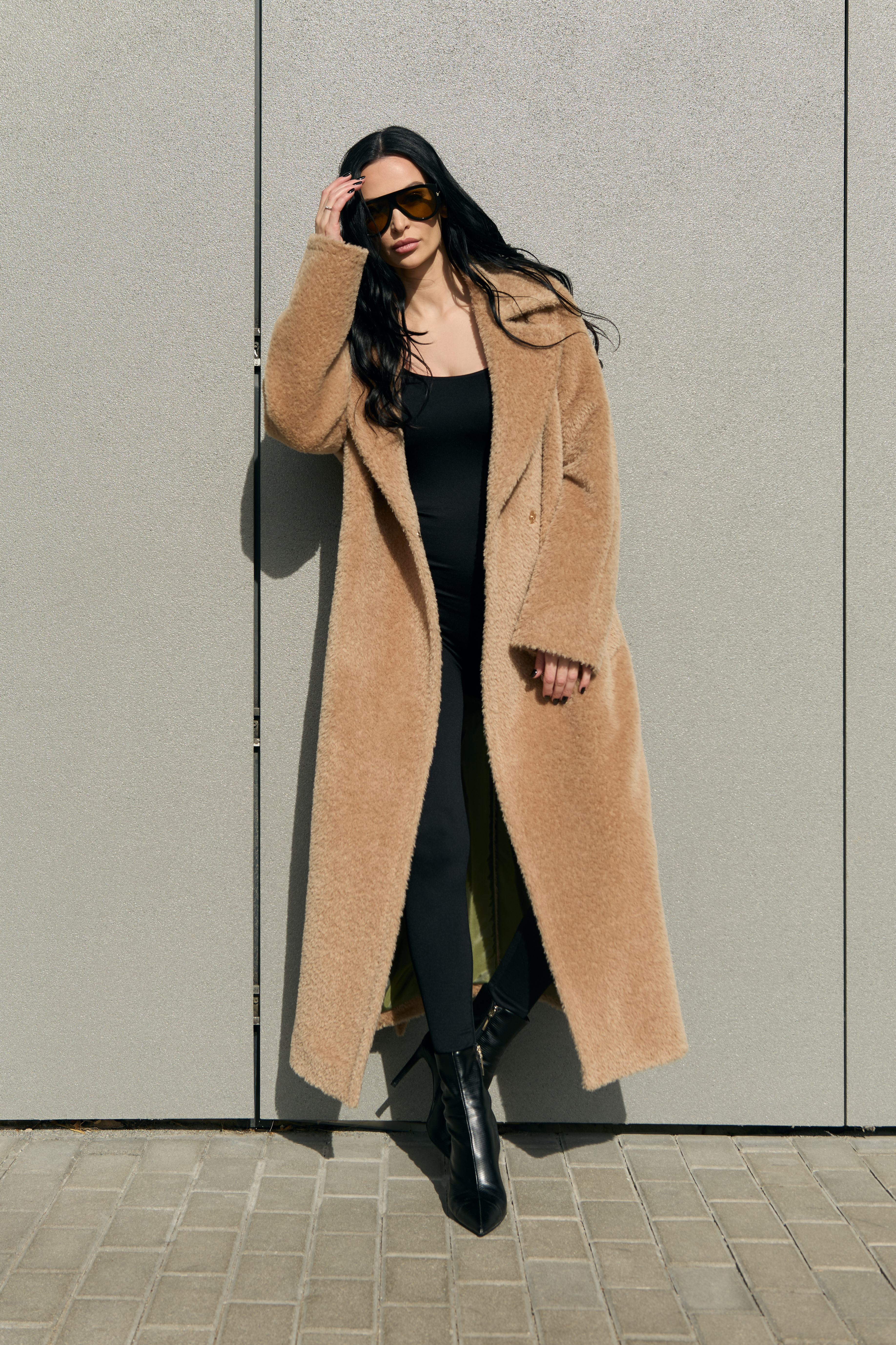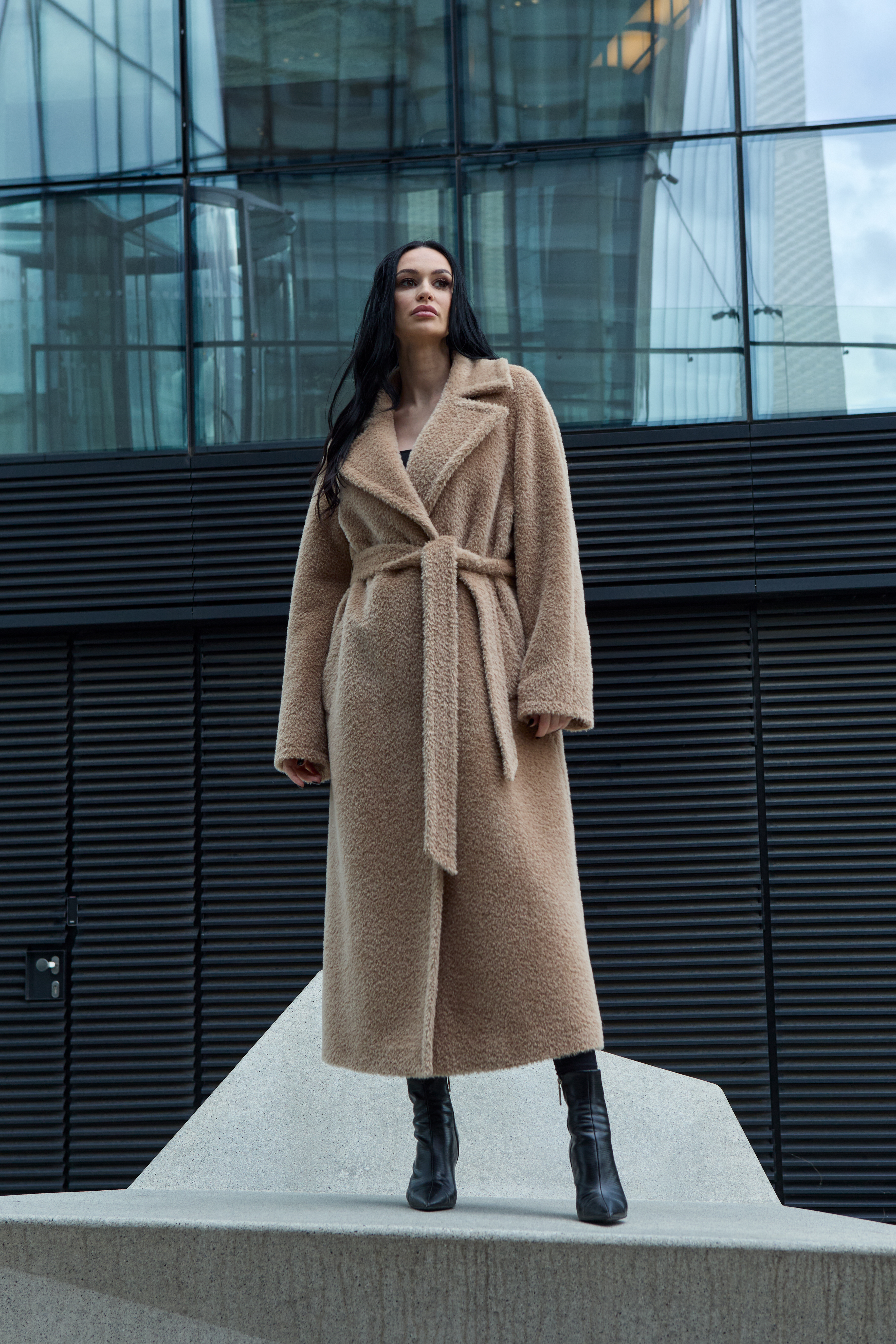 This is a high-quality Italian-made fabric, unique for its long pile and special weave. The fabric is woven so that the sheep’s wool lies underneath, while the long alpaca fibers are on the surface — creating an exceptionally warm and beautiful texture. The alpaca fibers are glossy, very soft, and smooth; the quality of the material can be felt with just one touch.