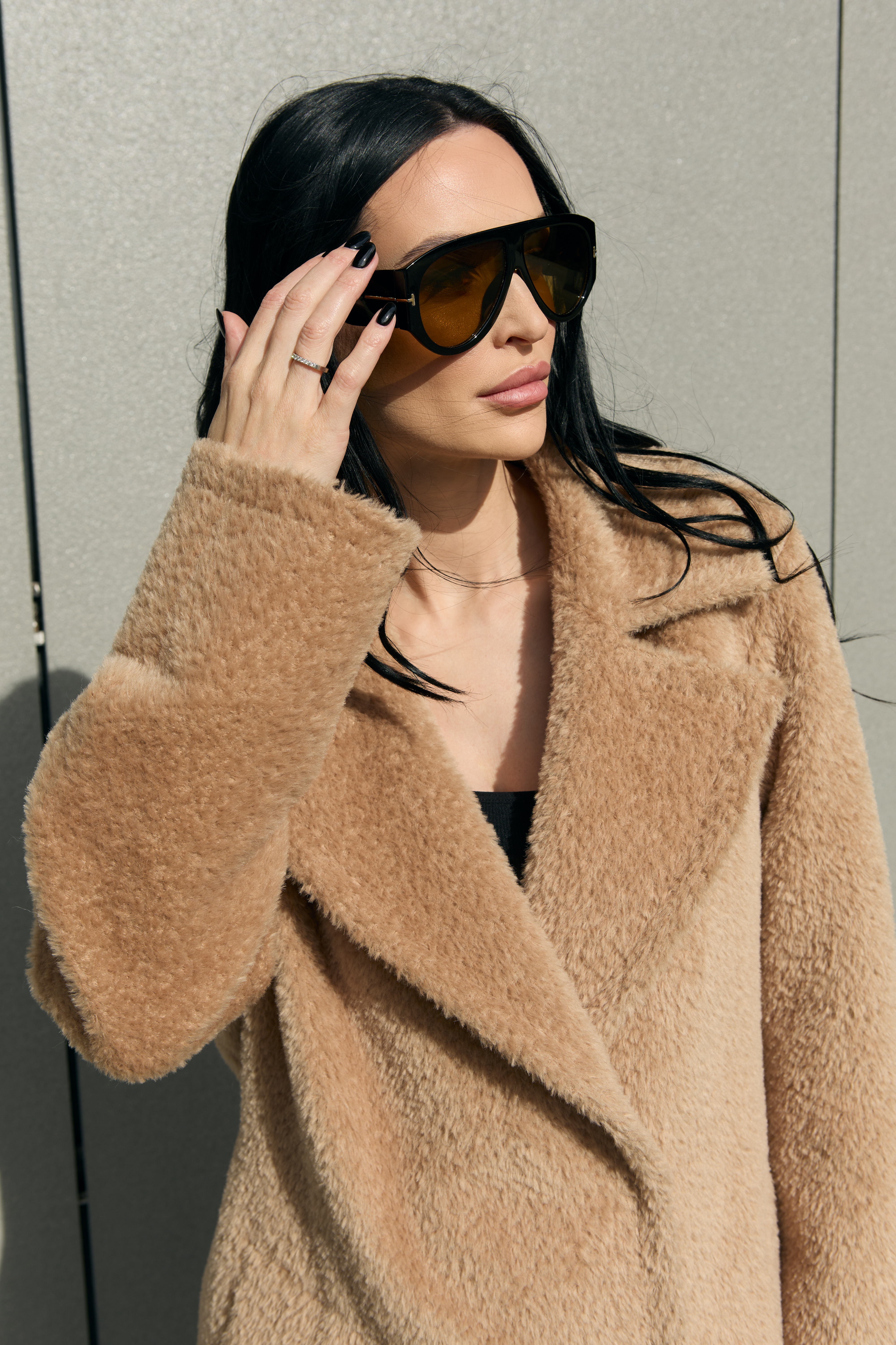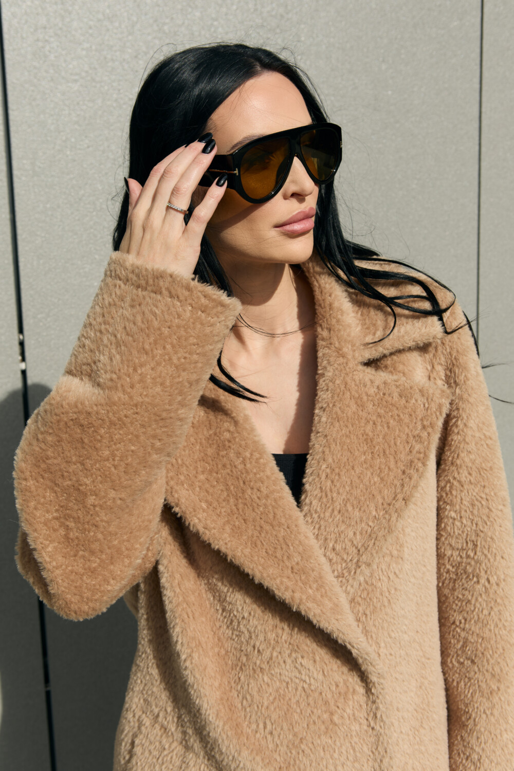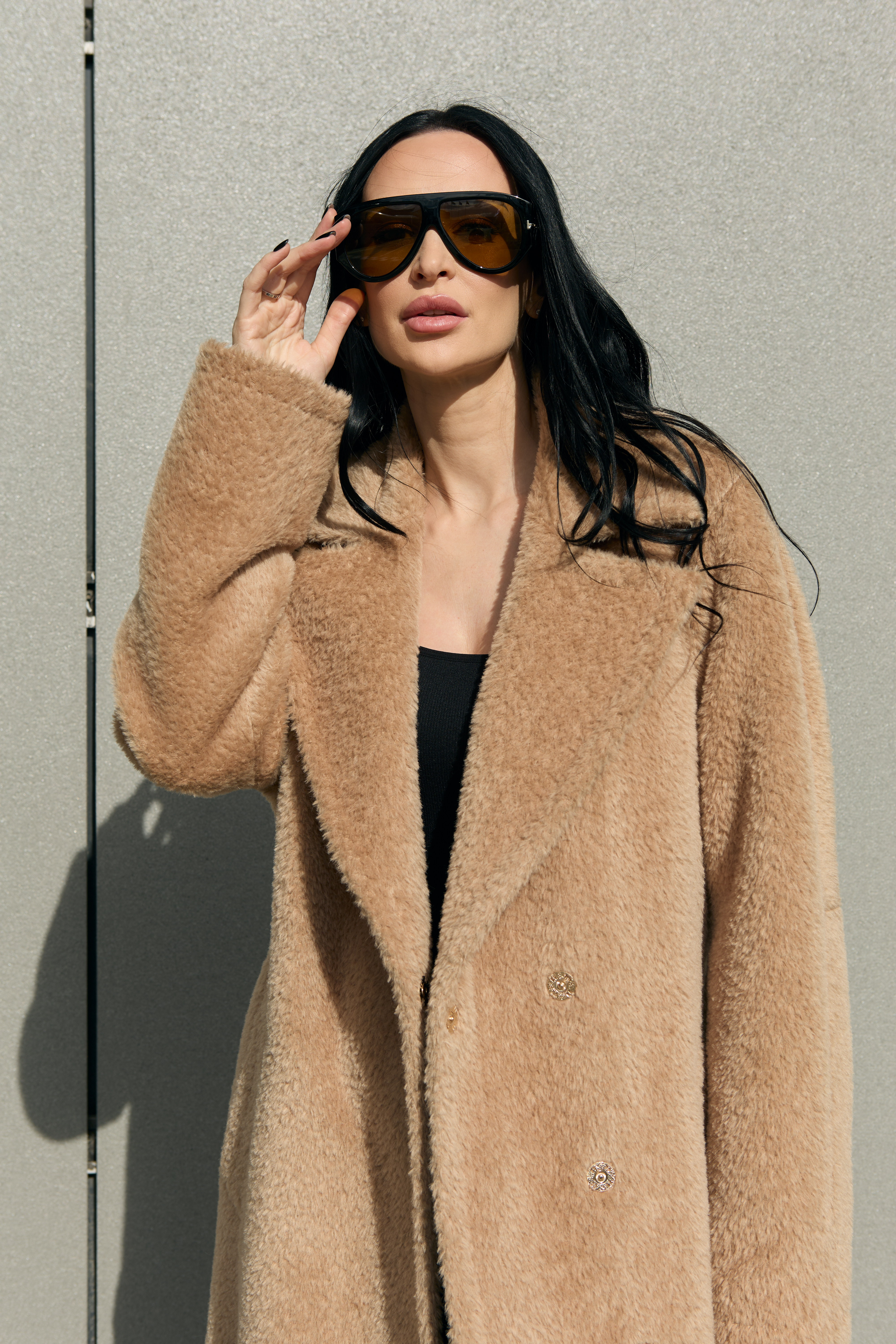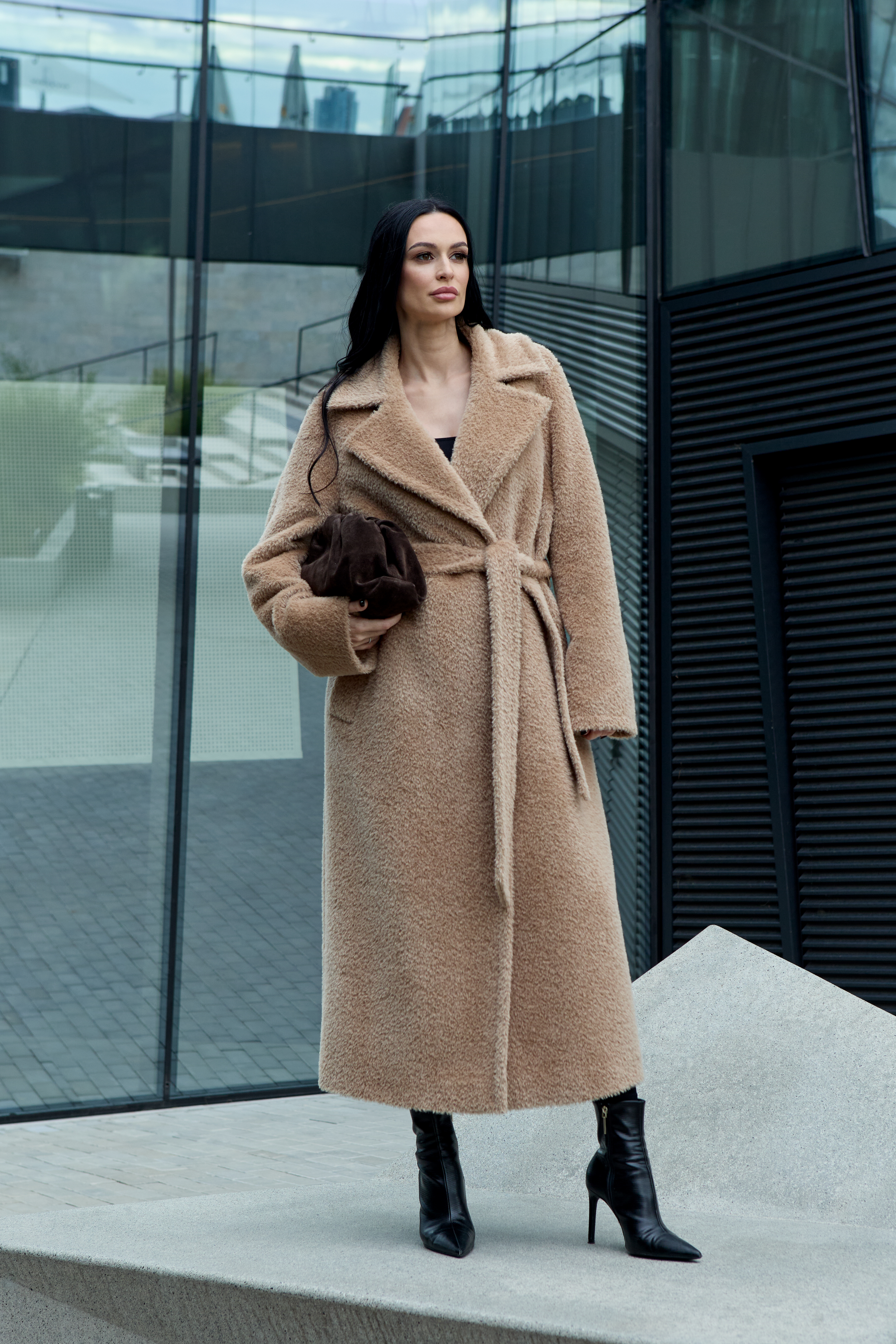 This is a high-quality Italian-made fabric, unique for its long pile and special weave. The fabric is woven so that the sheep’s wool lies underneath, while the long alpaca fibers are on the surface — creating an exceptionally warm and beautiful texture. The alpaca fibers are glossy, very soft, and smooth; the quality of the material can be felt with just one touch.
