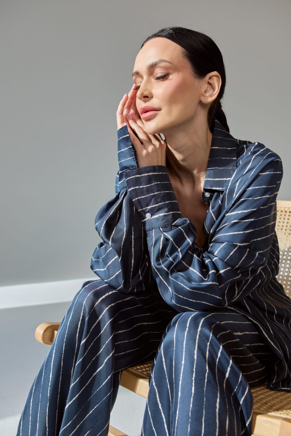 This set is a refined blend of lightness, natural fabrics, and timeless aesthetics. The “Vintage Blue” Silk Set is designed for those who value impeccable quality and understated style.