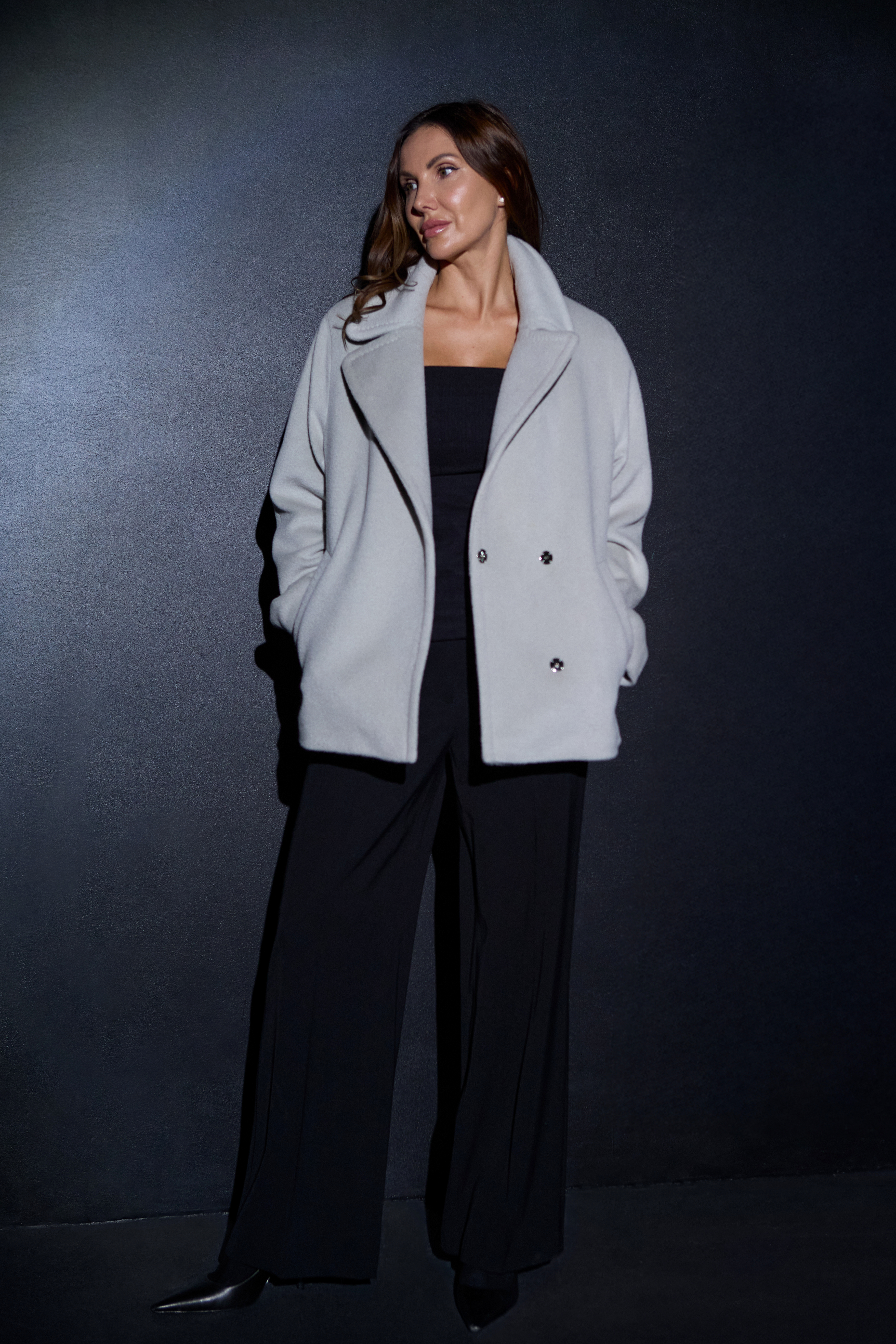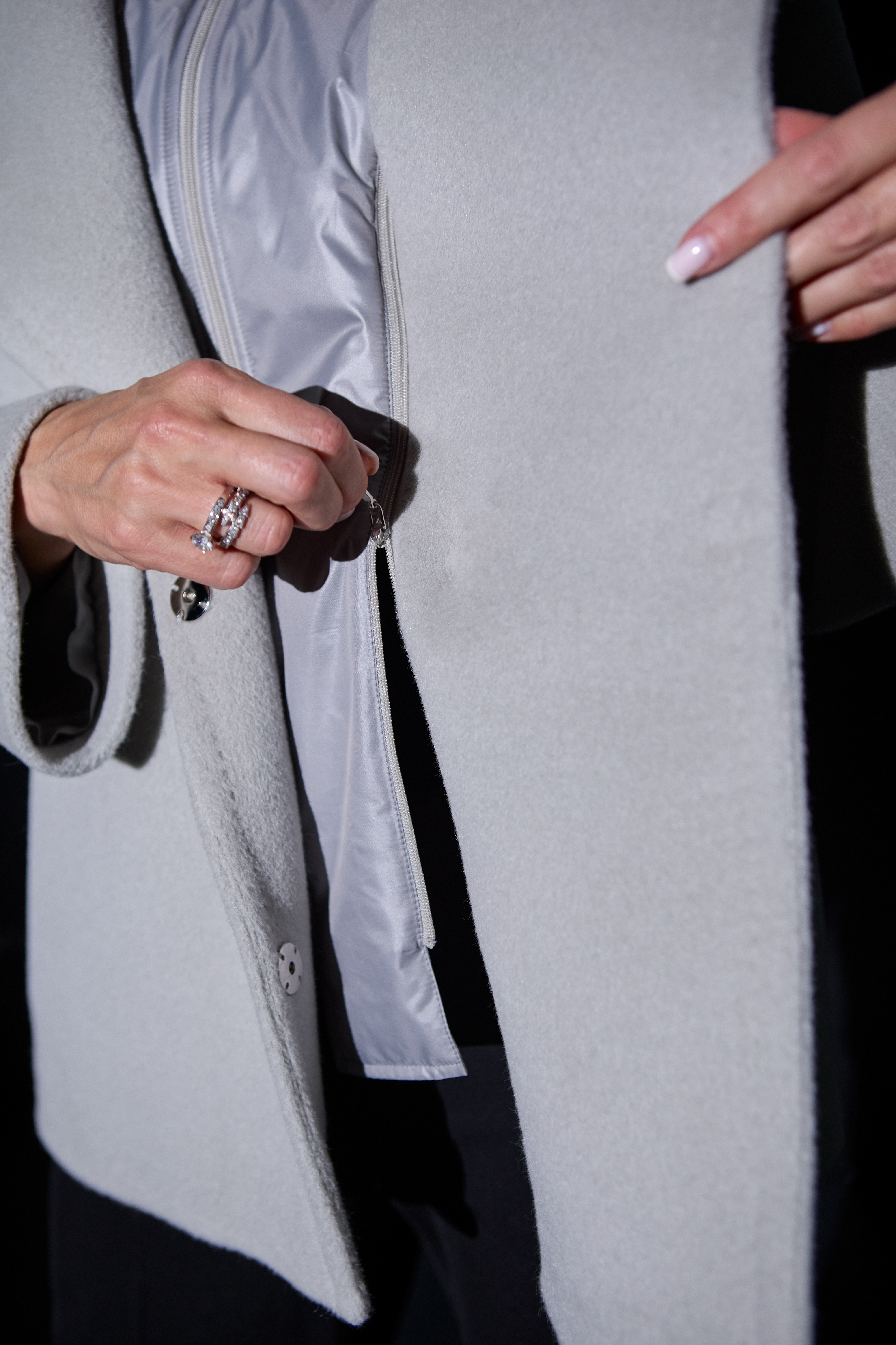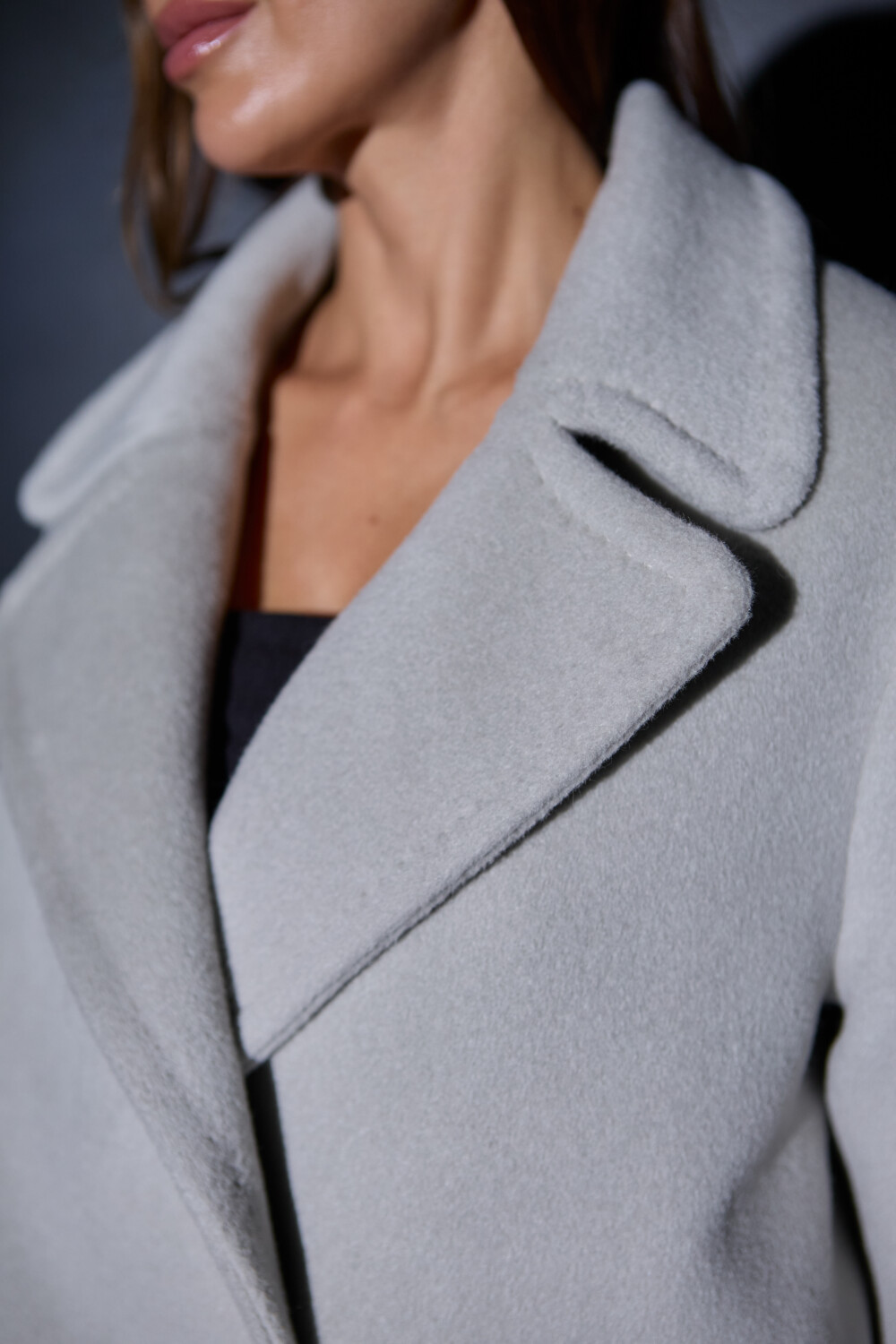 Šis trumpas, šviesios spalvos paltas iš aukščiausios kokybės alpakos vilnos, tai išskirtinis pasirinkimas moderniai moteriai, vertinančiai komfortą, funkcionalumą ir rafinuotą stilių. Paltas išsiskiria ilgaamžiu grožio, subtilumo ir praktiškumo deriniu, todėl puikiai tiks tiek kasdienai, tiek ypatingoms progoms.