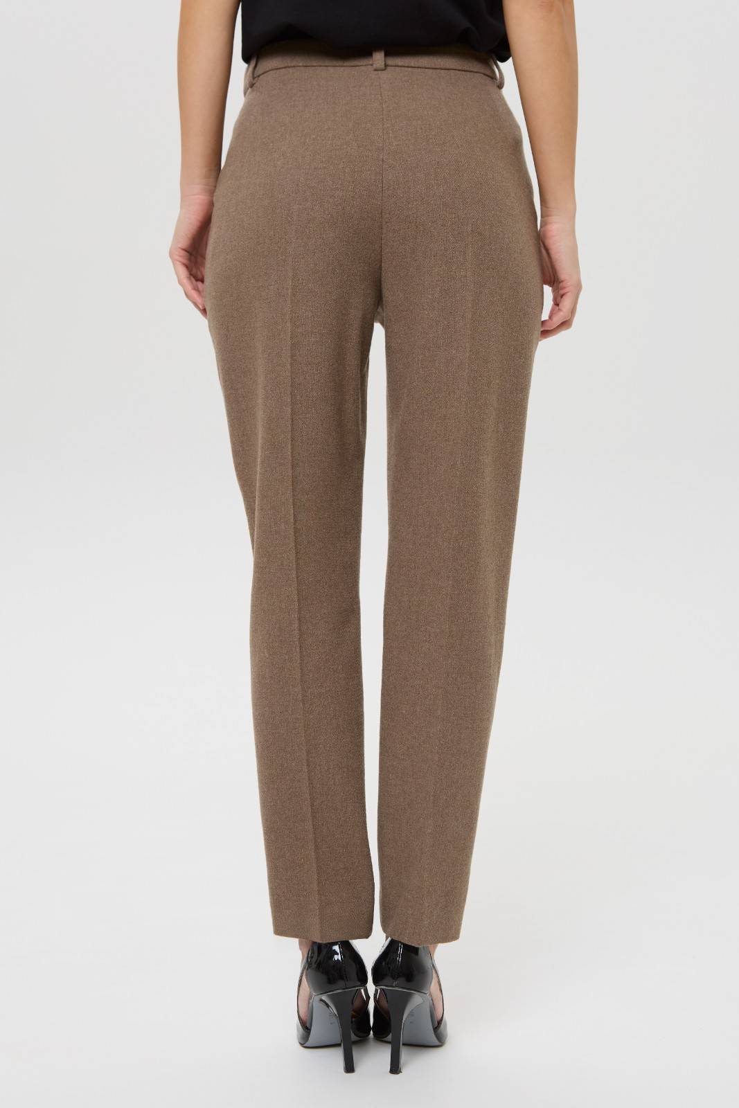 Šios klasikinės vilnonės kelnės pasižymi subtilia elegancija ir nepriekaištinga forma. Klasikinis, šiek tiek siaurėjantis siluetas vizualiai ilgina kojas ir užtikrina patogų prigludimą. Aukštesnis liemuo subtiliai formuoja figūrą, o kokybiškas audinys leidžia jaustis komfortiškai visą dieną.