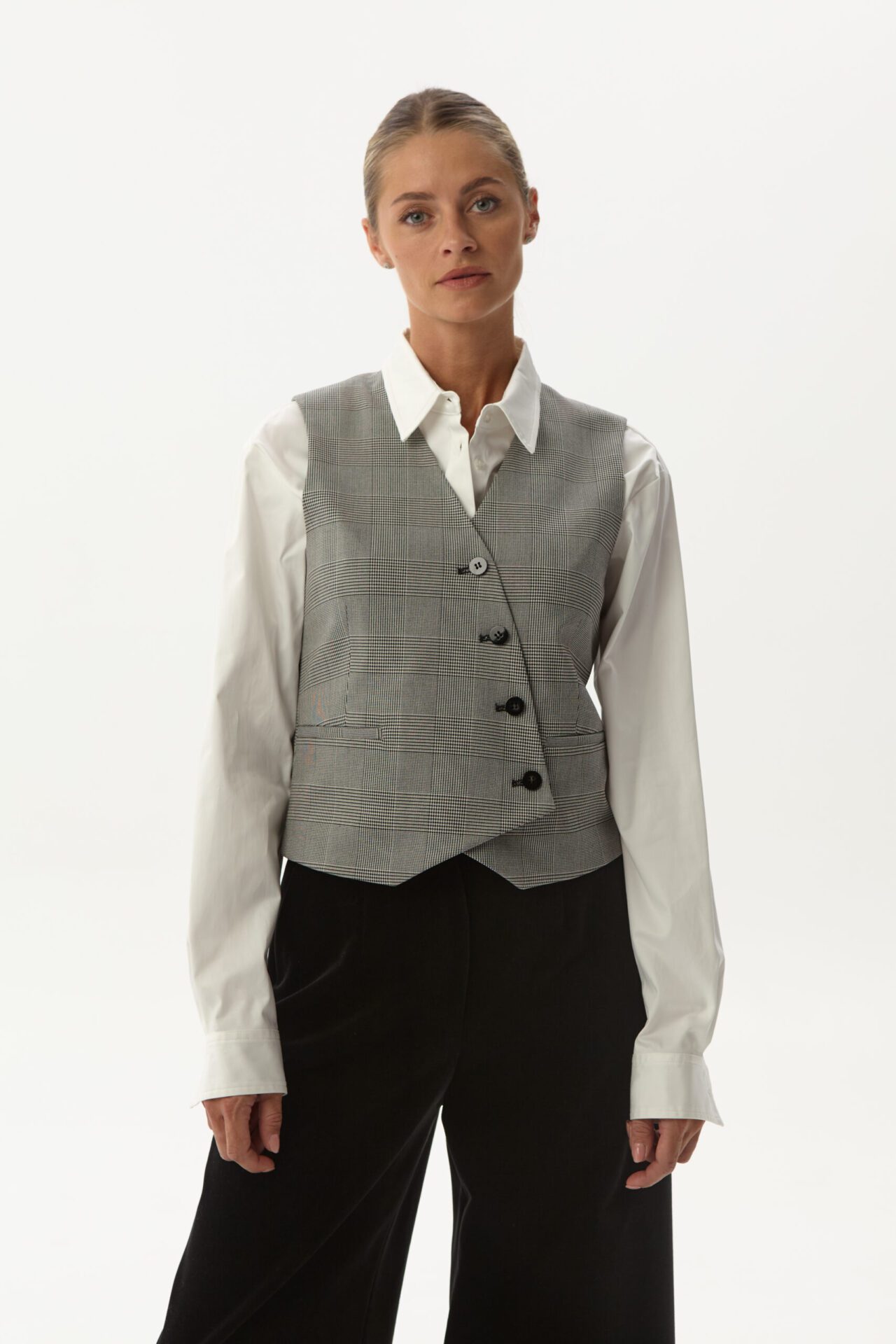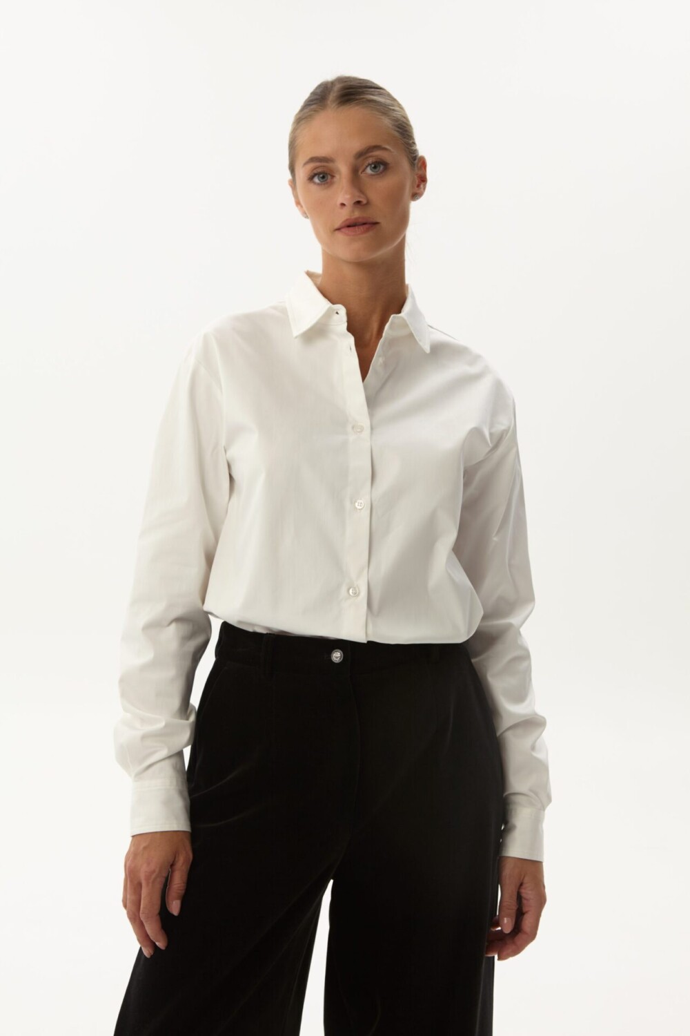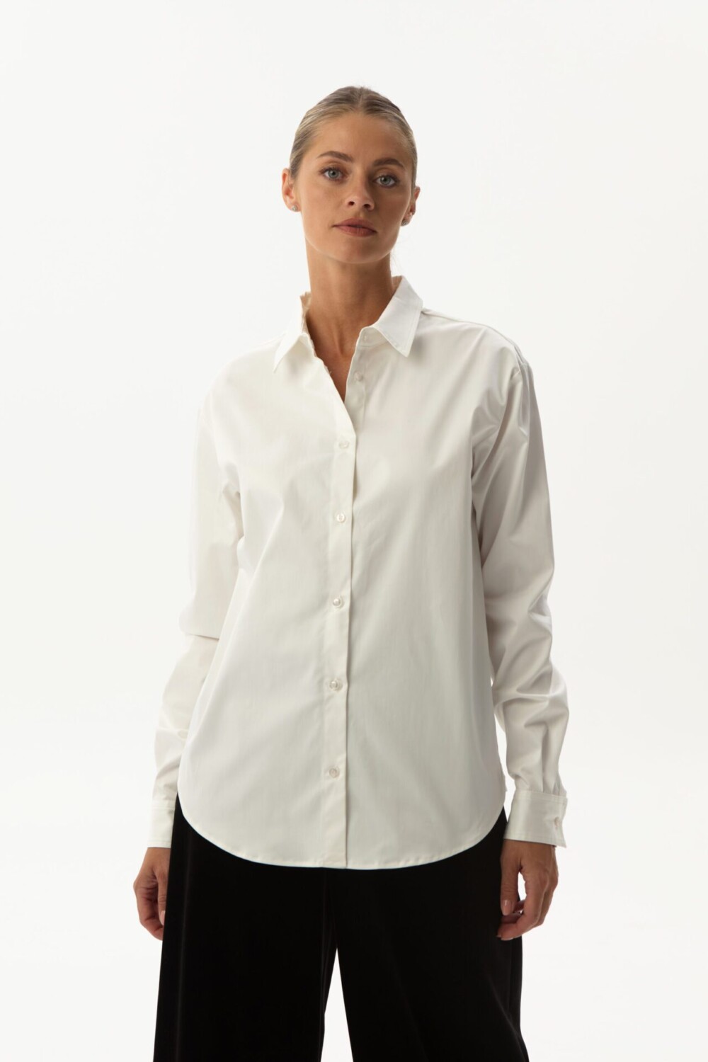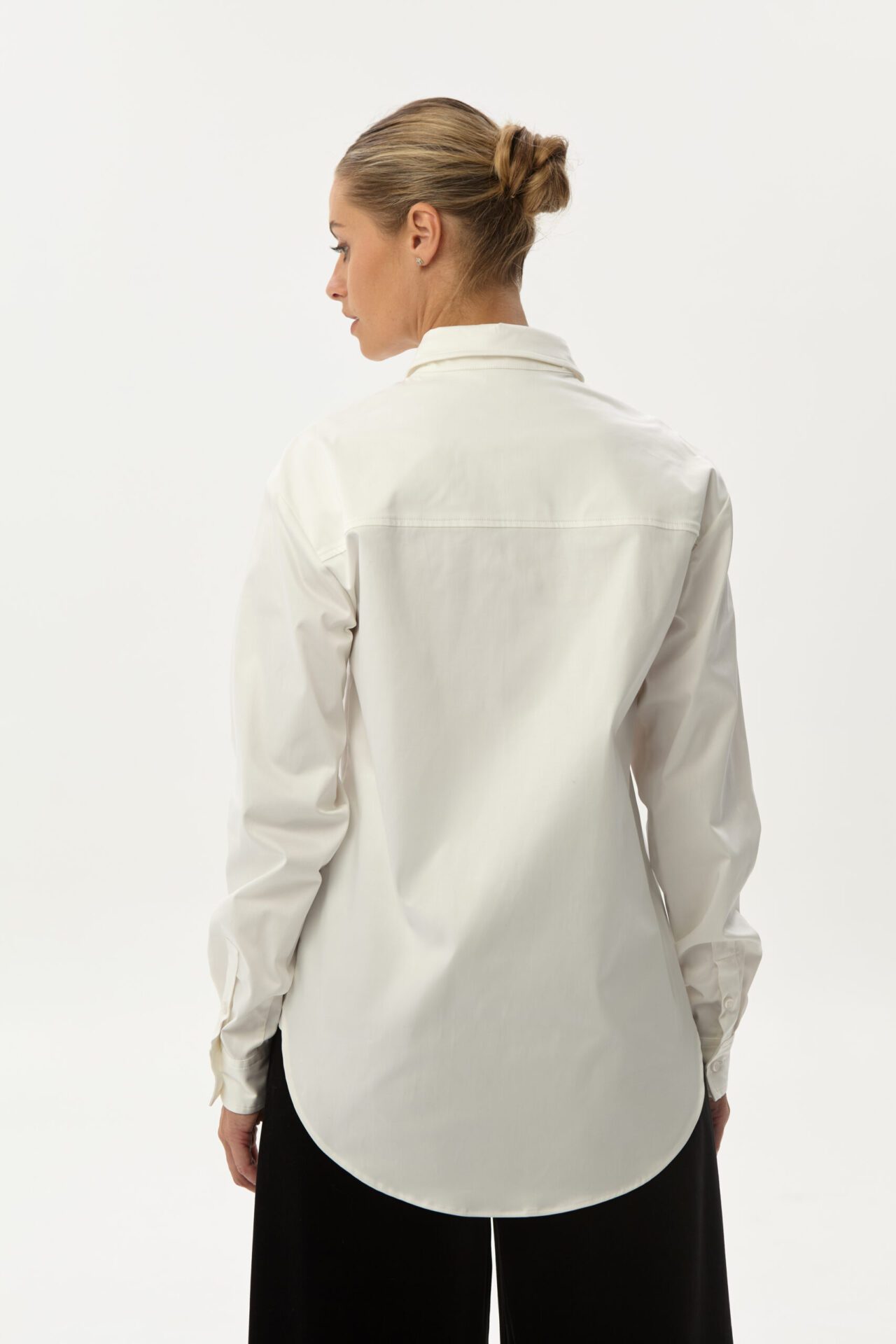 Tai klasikinio kirpimo balti marškiniai su apykakle. Marškiniai šiek tiek įliemenuoti.