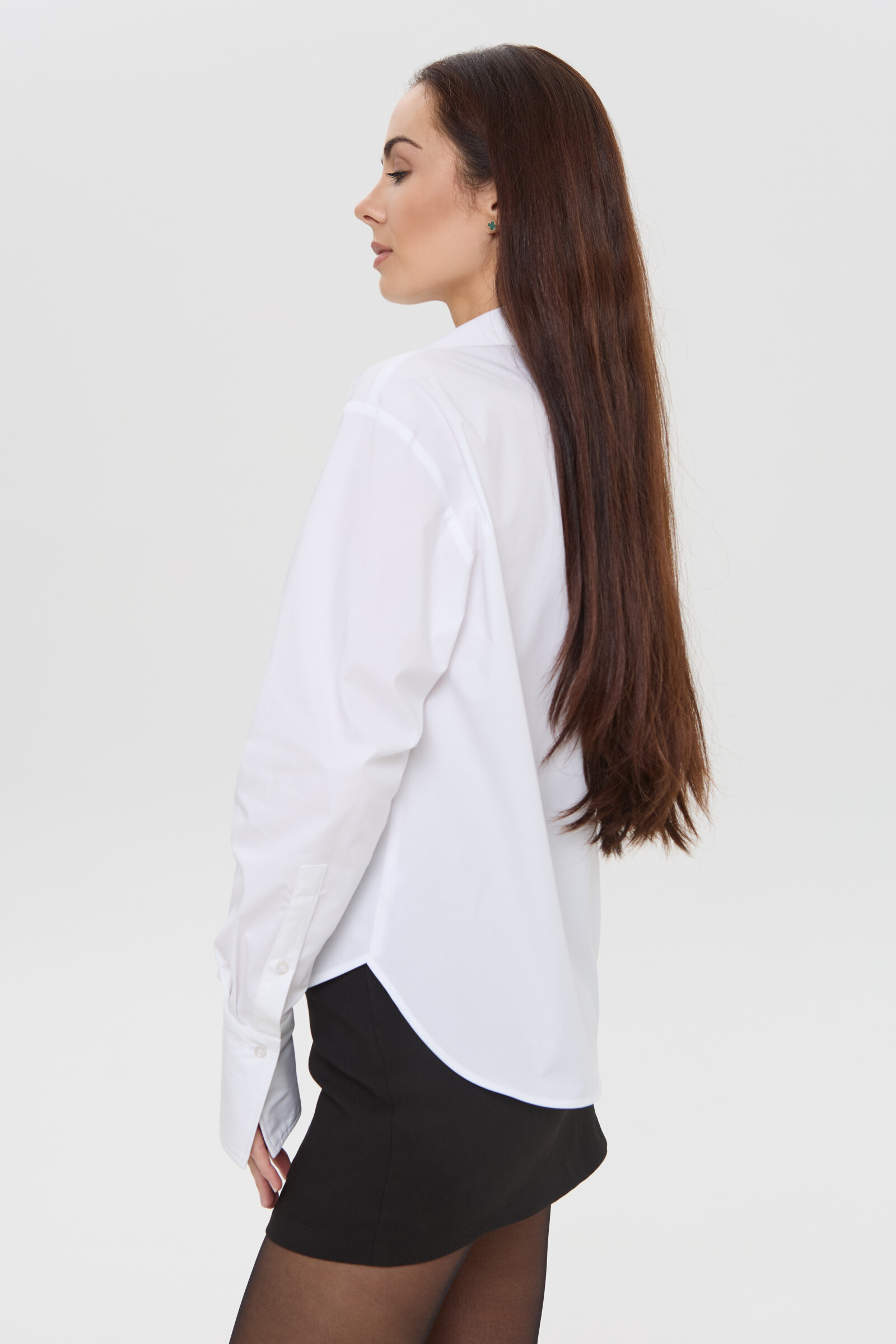 Šie balti klasikinio kirpimo marškiniai pasižymi itin kruopščiai atrinktu audiniu bei apgalvotomis detalėmis, kurios suteikia jiems modernios elegancijos.