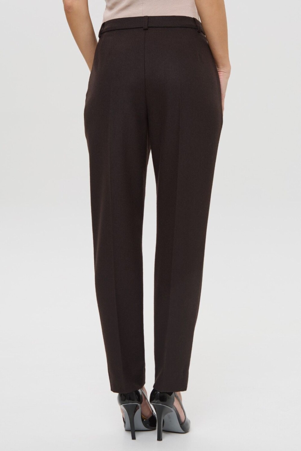 Klasikinės vilnonės kelnės pasižymi subtilia elegancija ir nepriekaištinga forma. Tiesaus, šiek tiek platėjančio silueto modelis vizualiai ilgina kojas ir suteikia įvaizdžiui struktūros bei modernumo. Priekyje išryškintos kantų linijos pabrėžia tvarkingą, architektūrišką charakterį. Kelnės pasiūtos iš aukštos kokybės vilnonio audinio, kuris malonus dėvėti, išlaiko formą ir leidžia kūnui kvėpuoti. Klasikinis užsegimas su sagute, diržo kilpos ir šoninės kišenės užtikrina funkcionalumą bei universalumą. Puikiai tinka tiek kasdieniam, tiek formalesniam įvaizdžiui.