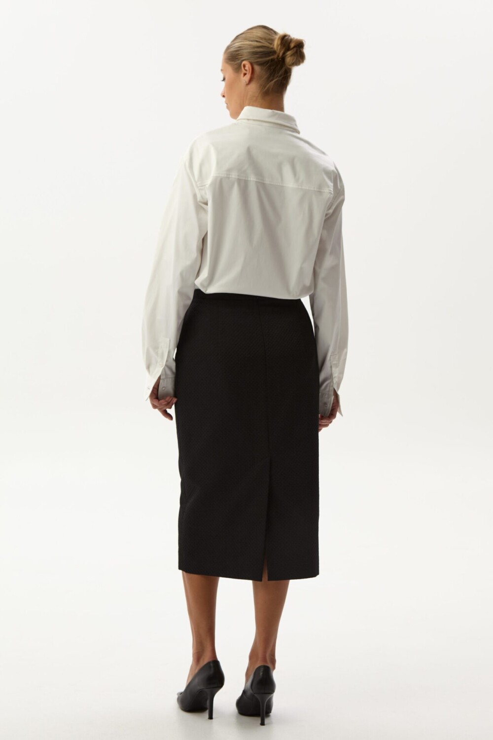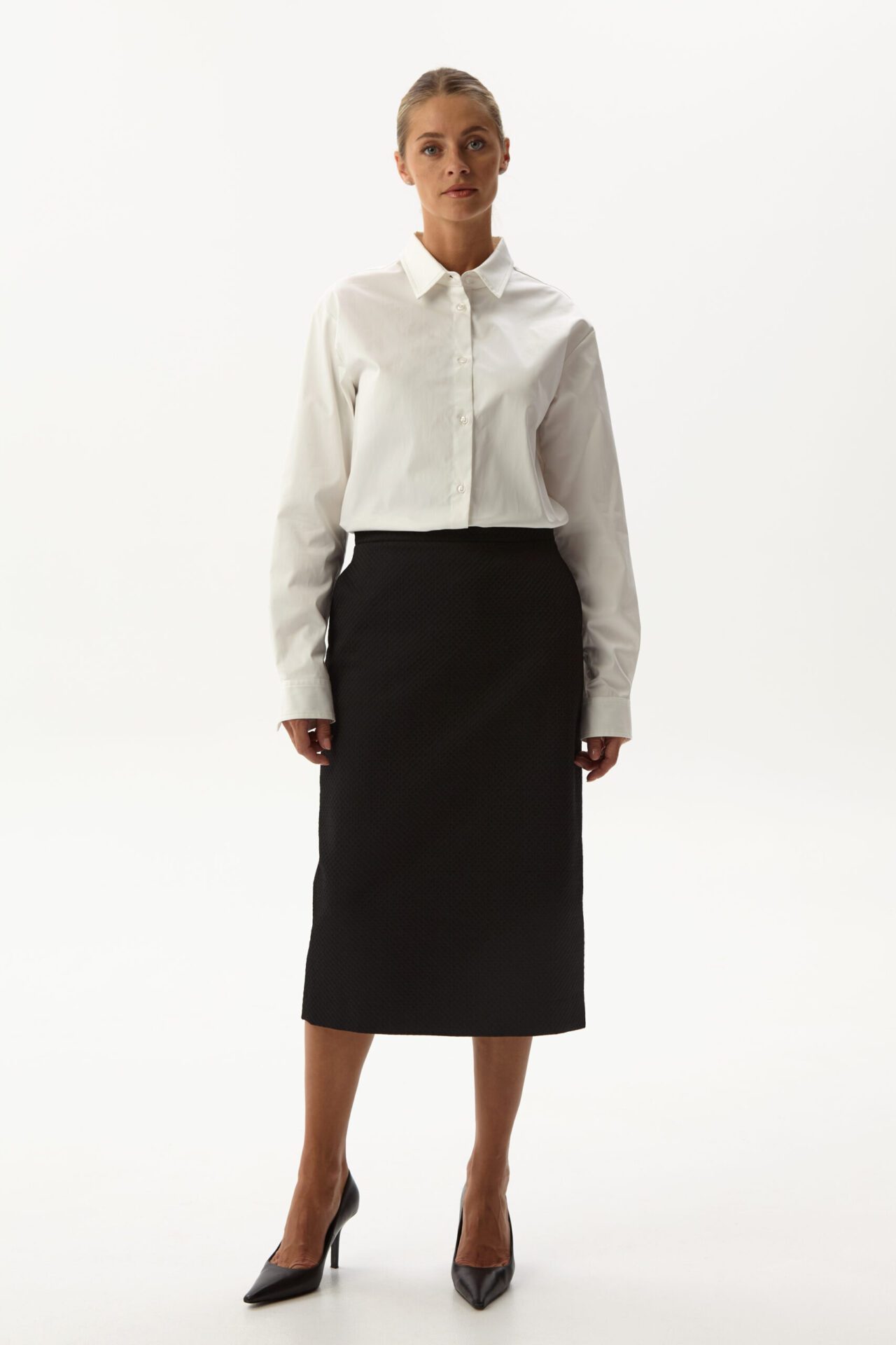 Klasikinis pieštuko formos sijonas su pamušalu, tad puikiai palaiko savo formą.