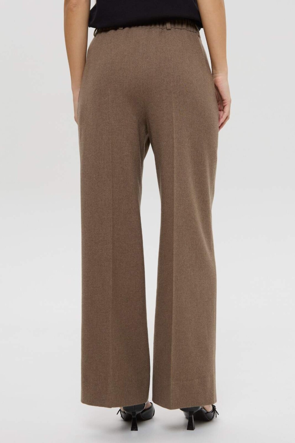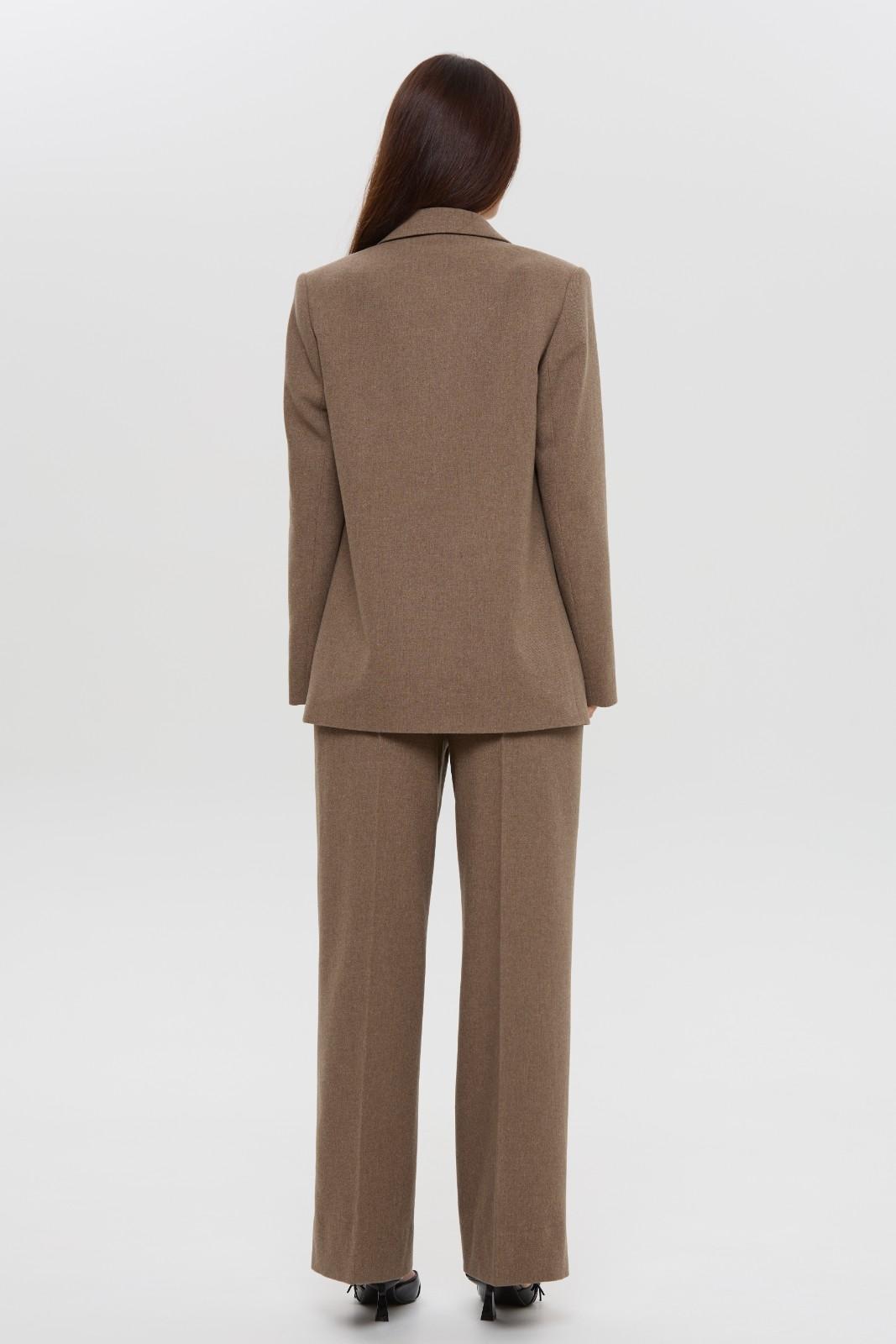 Šios klasikinės vilnonės kelnės pasižymi subtilia elegancija ir nepriekaištinga forma. Tiesaus, šiek tiek platėjančio silueto modelis vizualiai ilgina kojas ir suteikia įvaizdžiui struktūros bei modernumo. Priekyje išryškintos kantų linijos pabrėžia tvarkingą, architektūrišką charakterį.